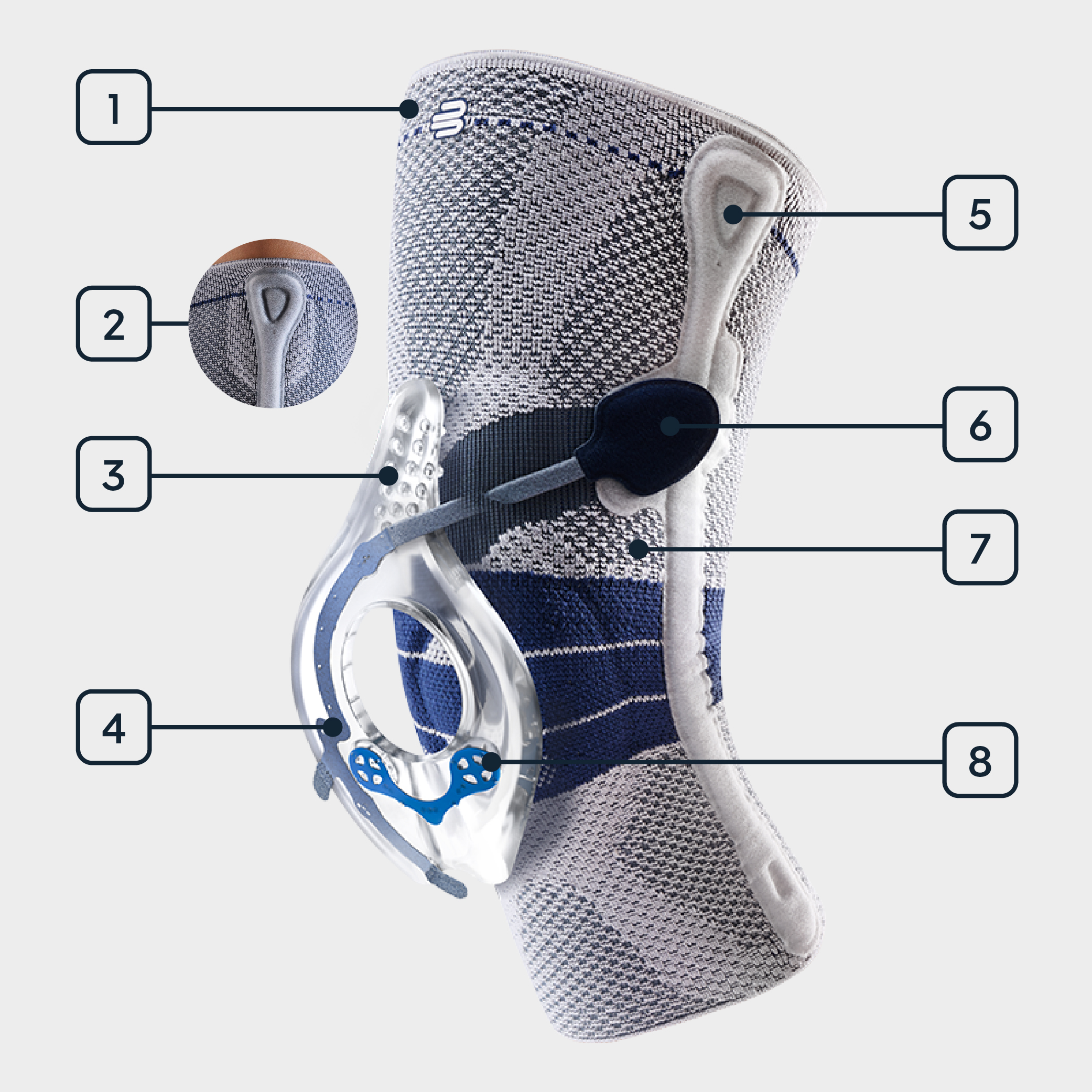 Move with less pain and more control with Bauerfeind’s redesigned GenuTrain P3 patella stabilizer.